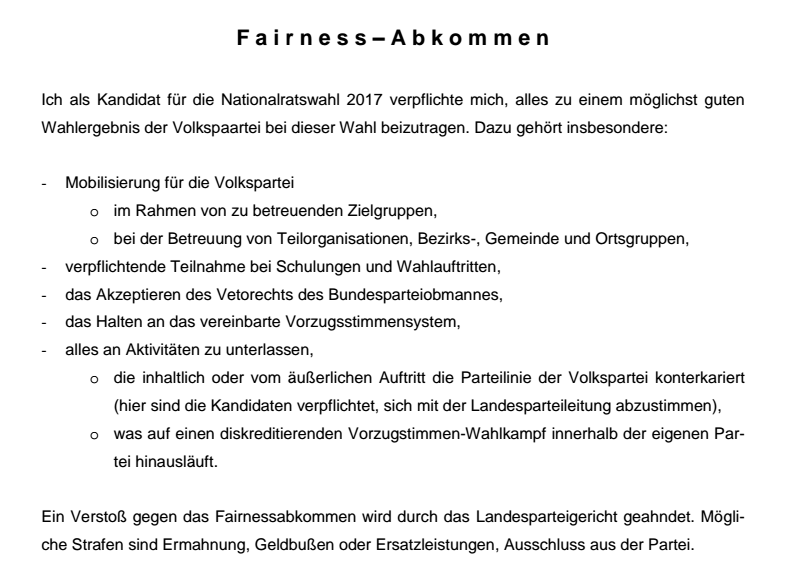 Es ist ein ganzes Paket an Abkommen, Verpflichtungen und Verträgen mit der Partei, das die KandidatInnen der ÖVP für diese Wahl unterzeichnen müssen. Auf Wunsch des neuen Parteiobmannes, Sebastian Kurz, werden bei der Wahl die Vorzugsstimmen entscheiden, wer die Sitze der Partei im Nationalrat erhält. Da das im Widerspruch zur geltenden Nationalratswahlordnung ist, müssen jene, die auf eine Liste der ÖVP wollen, sogenannte “Verpflichtungserklärungen” unterzeichnen. Alle vermutlich 700-800 BewerberInnen der “Neuen Volkspartei” müssen auf ihr Mandat verzichten, noch bevor sie es erhalten haben. Doch das ist erst der Anfang.